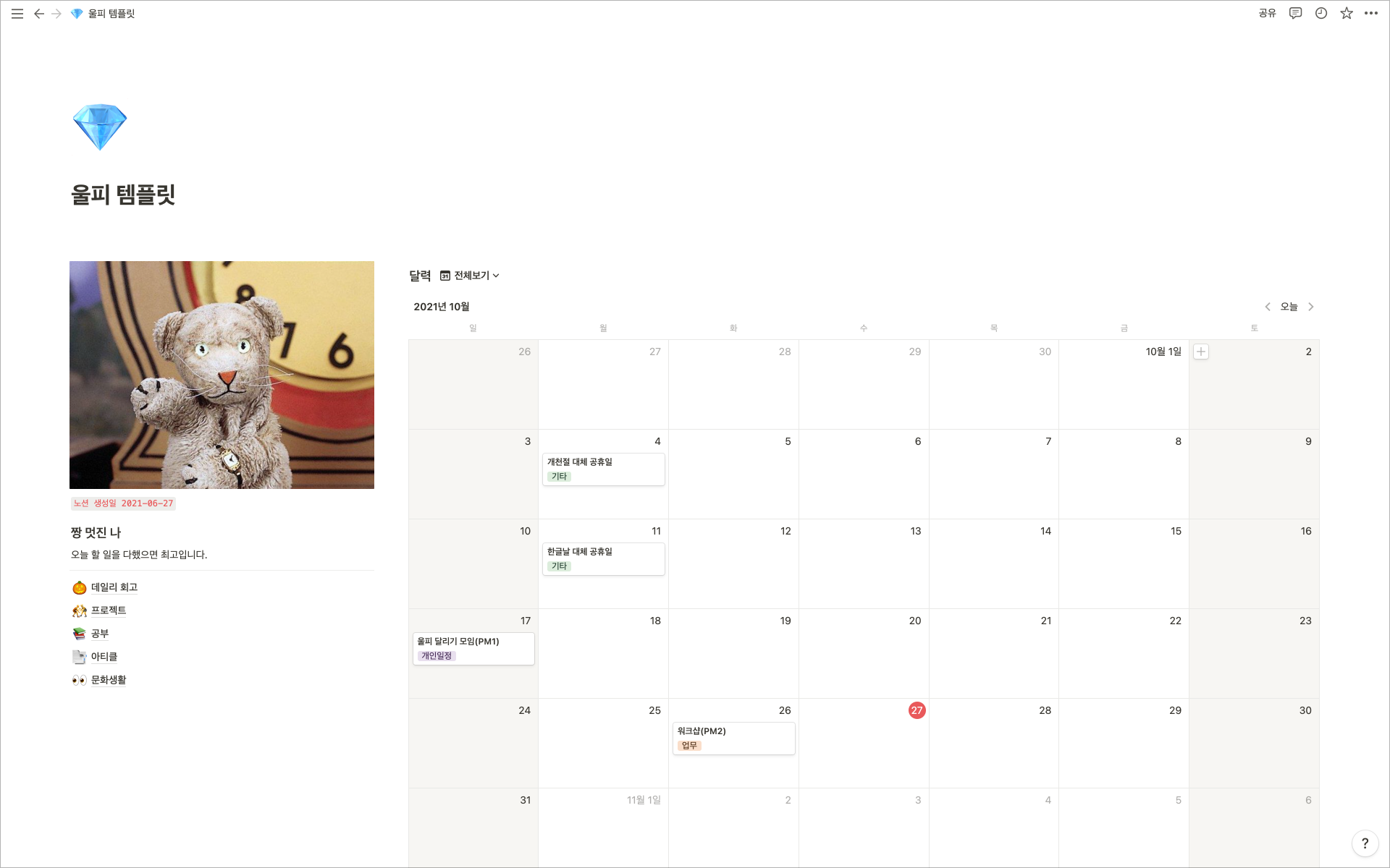 + 다른 카테고리의 내용들도 꽤 볼만하니(?) 링크로 들어가셔서 구경도하시고, 괜찮은 것 같다!!! 싶으시면 템플릿 복제도 가능하게 해두었으니 편하게 사용하시면 되겠습니다.👐