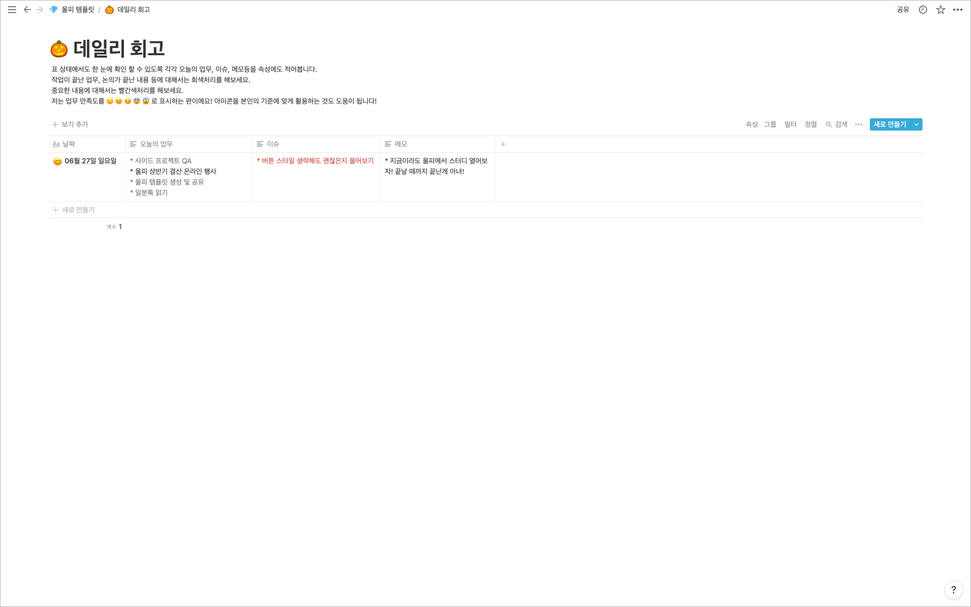 (노오올랍게도) 여기까지가 기존에 사용하던 업무 일지 템플릿이구요?!